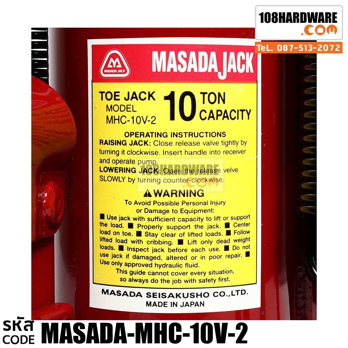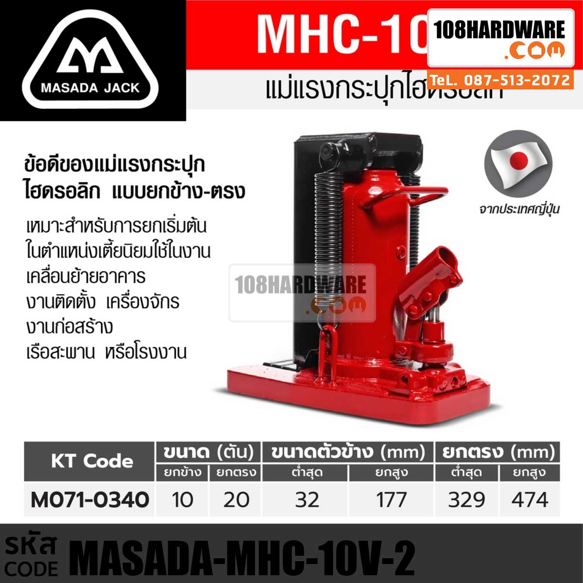 ข้อมูล แม่แรงกระปุกยกข้าง ยก 10 ตัน แบรนด์ MASADA รุ่น MHC-10V-2
